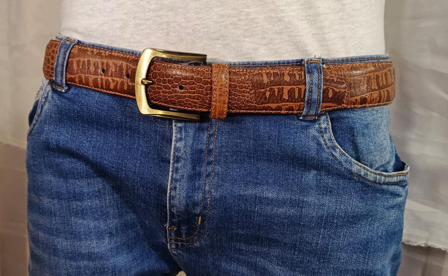 ORIGINAL COW HIDE BELT WITH EMBOSED CROCODILE PRINT